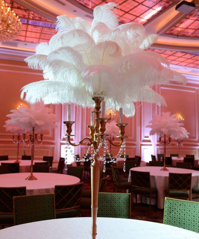 Spandex tower (lighted) ostrich feather centerpieces with crystals