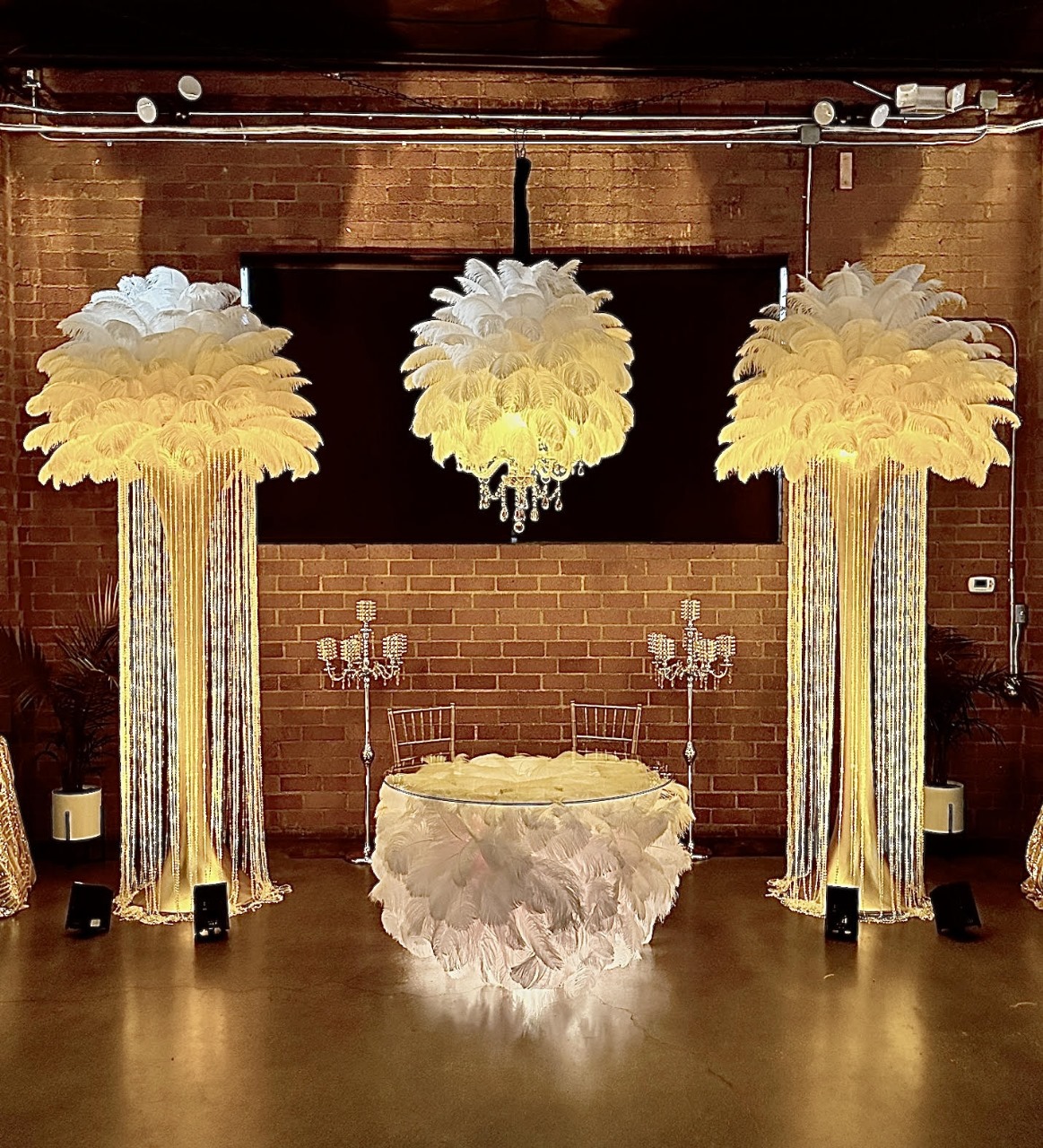 A beautiful and chic way to glam up any event! Just the right accent piece to add a bit of sophisticated elegance. It’s a great lighting option for weddings, parties and other events. If power source is an issue, we got you covered 😉